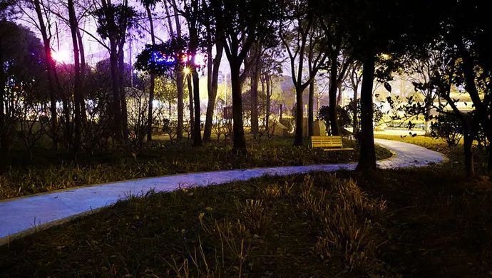 夜晚走在這樣的步道上,有沒有點兒夢幻感?